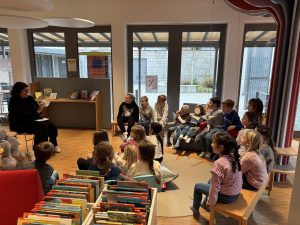 Zum Abschluss blieb sogar noch Zeit für eine gemeinsame Vorleserunde. Frau Gersitz las die Geschichte „Übermorgen vertragen wir uns“ vor. Gebannt lauschten die Kinder der Erzählung vom Bären und dem Biber, die sich wegen eines Missverständnisses streiten und sich schließlich doch wieder vertragen. Die Geschichte zeigte eindrucksvoll, wie wichtig es ist, Mut zu haben und Entschuldigung zu sagen. Denn echte Freunde halten zusammen – egal was passiert!