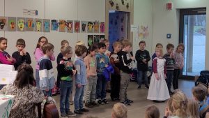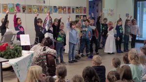 Die Veranstaltung begann mit dem traditionellen Lied „Wir sagen euch an“, das von allen Anwesenden mit großer Freude gesungen wurde. Kinder aus der Klasse 1a trugen ein Gedicht und ein Lied über einen kleinen Stern vor, der auf die Erde reist, um den Menschen Freude zu bringen. Voller Begeisterung sangen sie das Lied und begleiteten den Gesang mit Bewegungen, die den Stern und seine Reise darstellten.
