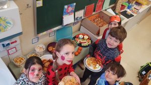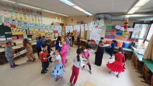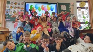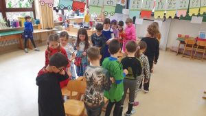 Am letzten Schultag vor den Faschingsferien starteten wir trotz des Datums – Freitag der 13. – ganz ohne Zwischenfälle mit einem leckeren Klassenfrühstück in den Tag. Bei ausgelassener Stimmung schwangen die bunt kostümierten Narren das Tanzbein auf Klassiker wie „Rucki Zucki“ und das „Rote Pferd“. Alle machten mit bei zahlreichen lustigen Spielen wie Familie Geier/Meier/Seier, Zeitungstanz, Polonaise durchs Schulhaus und der Reise nach Jerusalem. Wie im Flug ging die Faschingsfeier viel zu schnell zu Ende und wir verabschiedeten uns in die wohlverdienten
