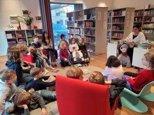 Einmal im Monat heißt es für die Klasse 2a: Auf in die Bücherei! 📚 Die Vorfreude ist jedes Mal riesig – und die Leselust gleich mit. Mit Begeisterung stöbern die Kinder durch die Regale und leihen sich neue spannende Bücher aus. Das absolute Highlight: Frau Gersitz liest vor! Alle hören gebannt zu, tauchen in die Geschichte ein und genießen die ruhige, gemeinsame Zeit. So macht Lesen richtig Spaß – und der nächste Büchereibesuch kann gar nicht schnell genug kommen!