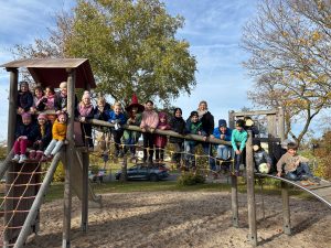 Gemeinsam machten wir uns auf den Weg zum Feuerwehrspielplatz in Waldbrunn. Für manche Kinder war dieser Spaziergang eine richtige Herausforderung, denn so lange Wanderungen waren sie teilweise nicht gewohnt. Umso größer war die Freude, als wir am Spielplatz ankamen und das liebevoll vorbereitete Buffet der Eltern entdeckten.