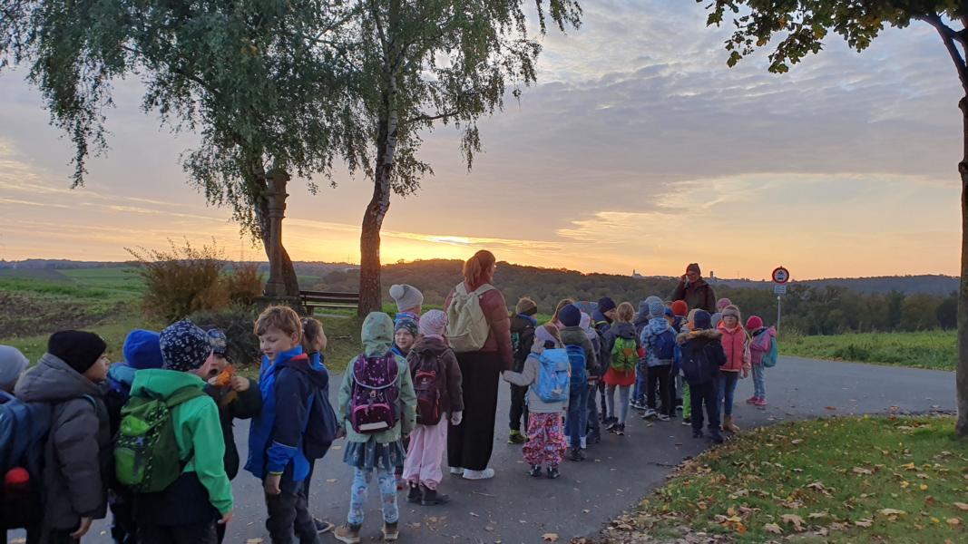 Bei wunderschönem Sonnenaufgang starteten die Klassen 1b und 1c in den lang ersehnten und wegen des schlechten Wetters mehrmals verschobenen Wandertag.