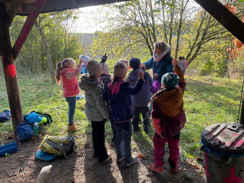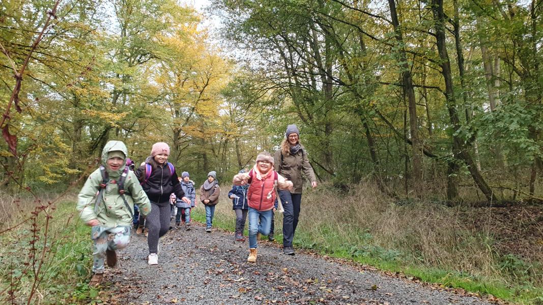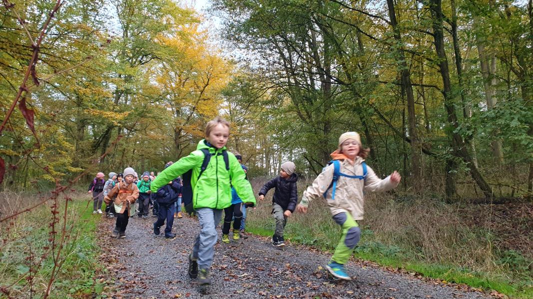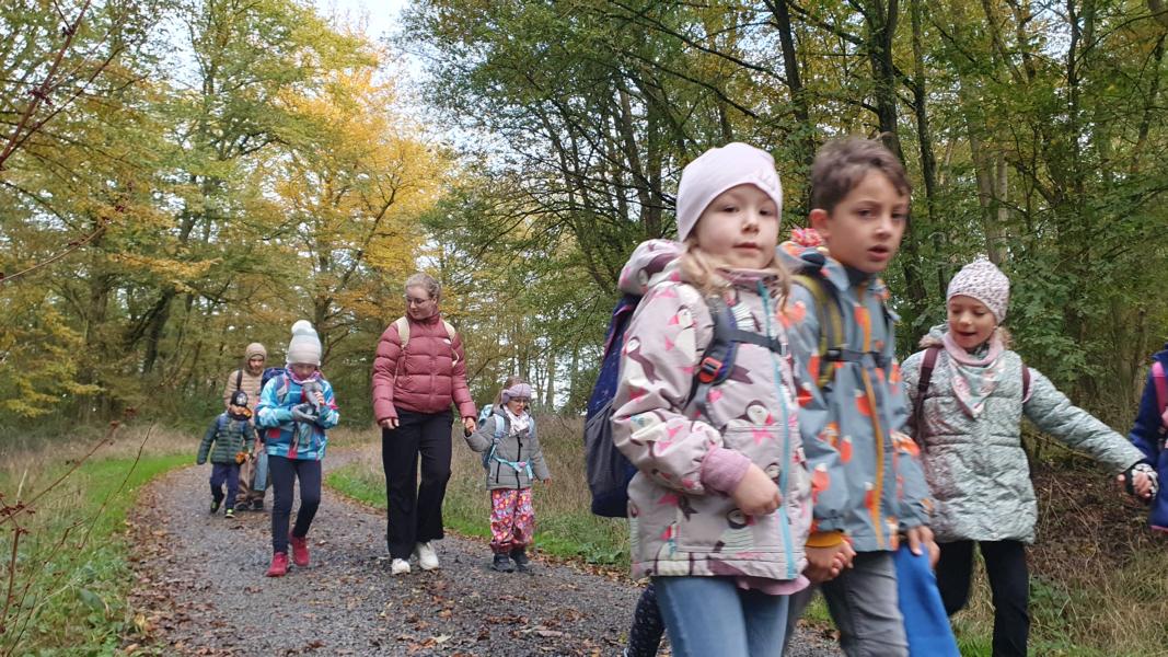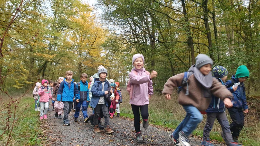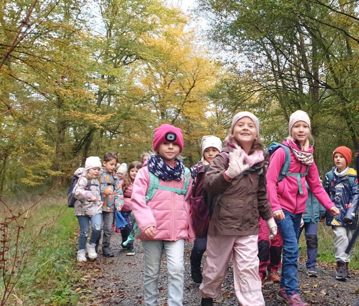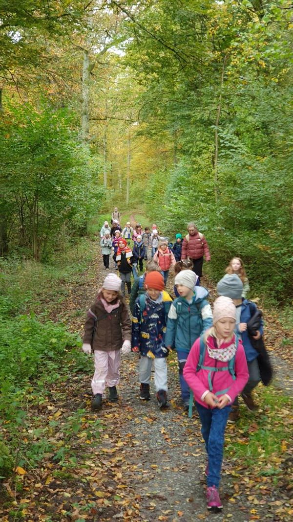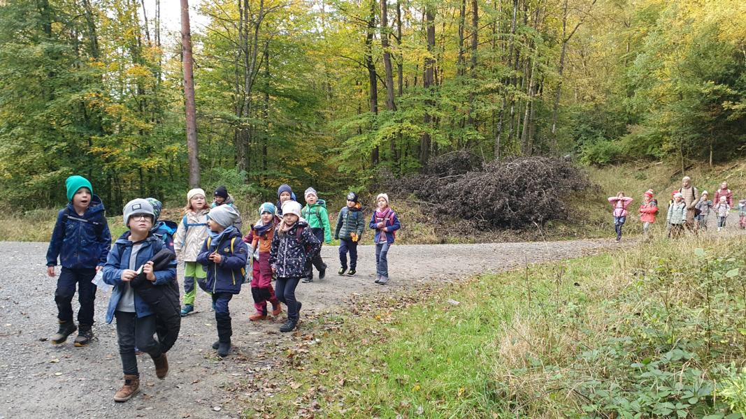 Voller Elan stapften die bestens ausgerüsteten Erstklässler durch den bunten Herbstwald.