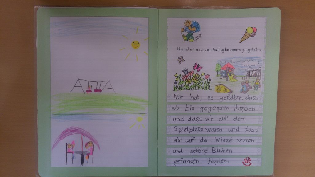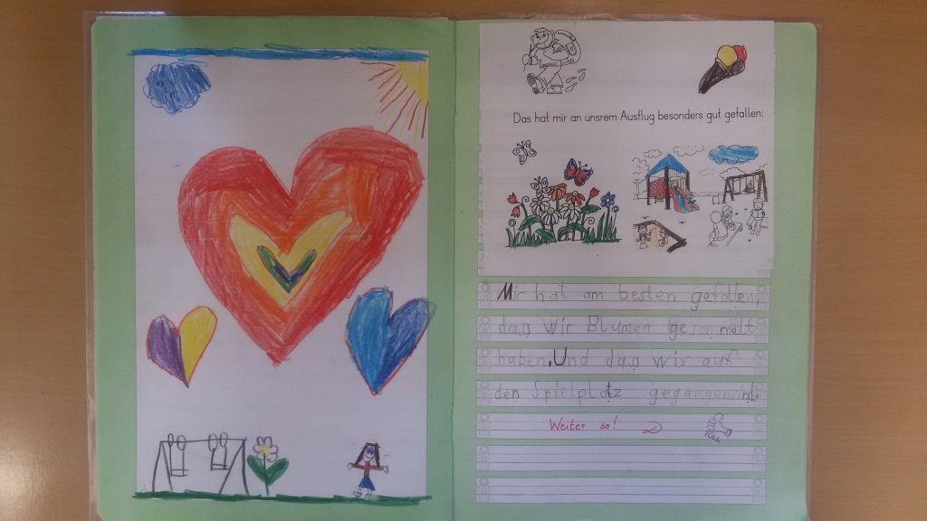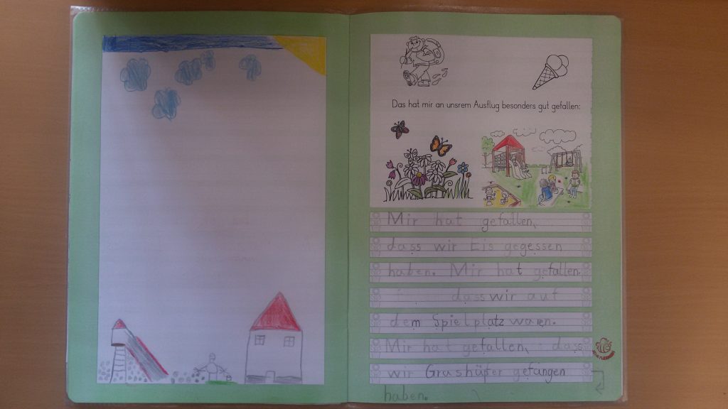 In unserem Geschichtenheft hielten wir die Eindrücke unserer Wiesenexkursion fest: