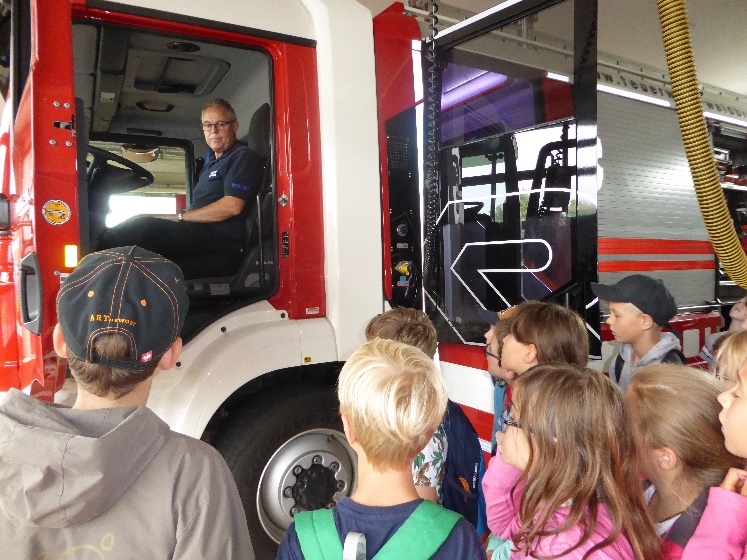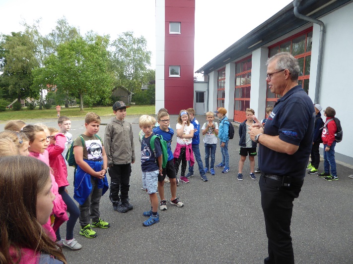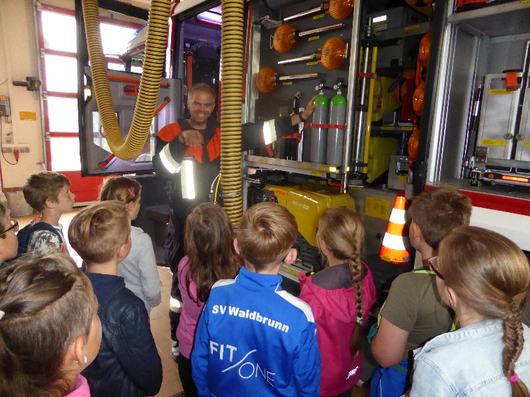 Am Freitag, 12.07.2019 durften die Kinder der Klasse 3b die Freiwillige Feuerwehr in Waldbrunn besuchen. Dort wurden sie vom Feuerwehrkommandanten, Herrn Wilhelm und vom Zugführer, Herrn Baunach freundlich empfangen. Die Kinder erfuhren sehr viel Interessantes über die örtliche Feuerwehr und durften anschließend viele Fragen stellen.